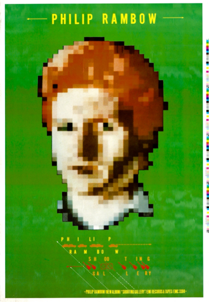 ...This poster and the album's attendant music paper ad campaign was the first in the music industry to use pixelated images - and heralds the dawn of the digital age...