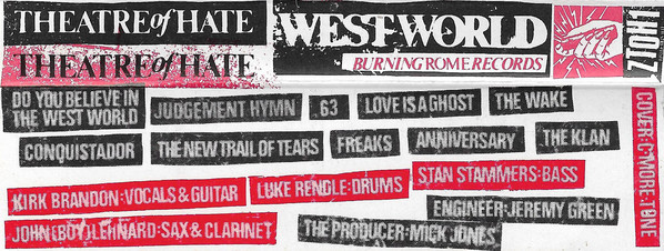 ...I'm very proud of designing the Theatre of Hate's logo and this is also one of the covers I'm most proud of - and seemingly highly-rated by record collectors amongst the ones I did...