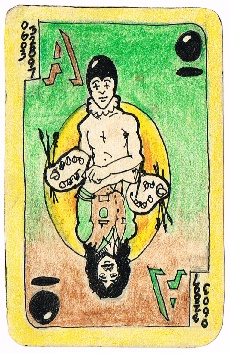 …a scan of a cut-out photo from 1975 and my hand-drawn ‘business card’ featuring my alter ego & psychedelic comic strip adventurer Little Louis - the card advertised my offering wares of calligraphy, lettering, logos & illustrations for book covers & comic strips - which is what I did before getting to do the stuff for Stiff…