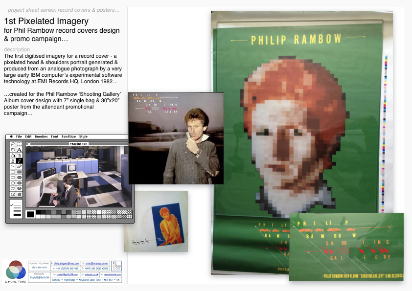 ...not only providing the, then unique to the record industry, image for my poster but also a time consuming set of pixelated portraits of famous historical figures for the ensuing ‘guess the digitised faces’ ad campaign - which, looking back, was probably the most creatively exciting & rewarding one I ever did - happy daze indeed..!
